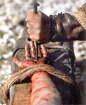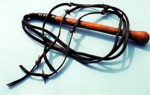 This is a brutal form of punishment. Jesus took 39 lashes with this type of whip. Thirty-nine strikes with a multiple corded weapon with metal shards tied into it. His body was torn apart. He was left bleeding and in pain, only then to be taken to the cross and nailed through his wrists and his feet and left to suffocate to death.